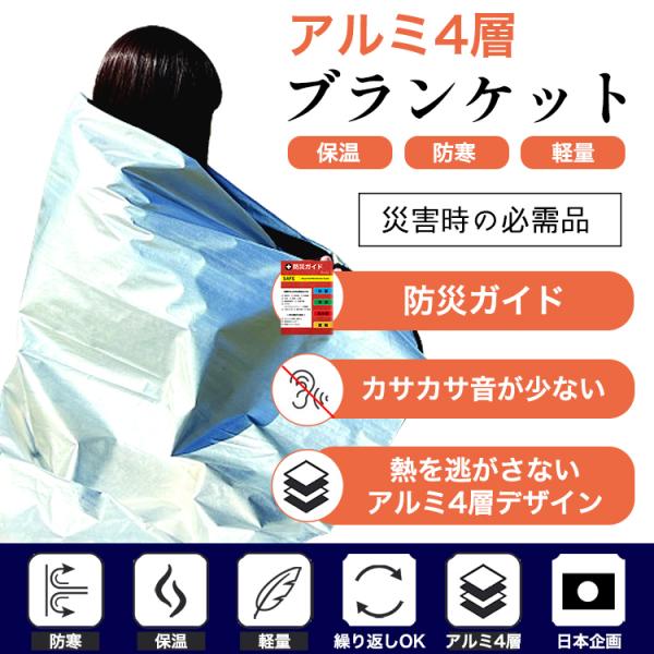 防災グッズ アルミシート 4層 アルミブランケット 防災ガイド付 サバイバルシート 厚 厚手 防災 災害 アルミ毛布 救急シート 防災用品 大きい 簡易毛布