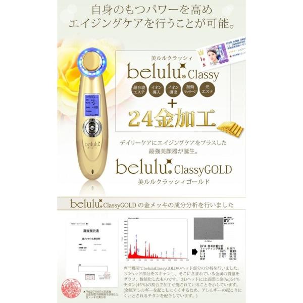 美顔器 美ルル クラッシィ ゴールド belulu 毛穴 黒ずみ 超音波 イオン導入 保湿 乾燥対策 純金 24K