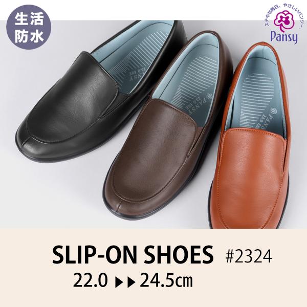 スリップオンシューズ パンジー 2324 3E レディース 生活防水 カジュアルシューズ 軽量 抗菌防臭 雨の日対応 履きやすい ブラック ブラウン レンガ