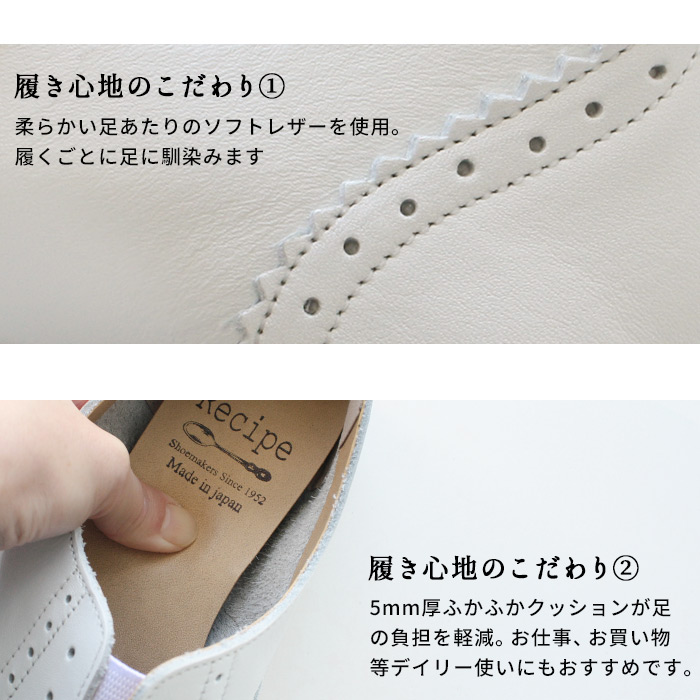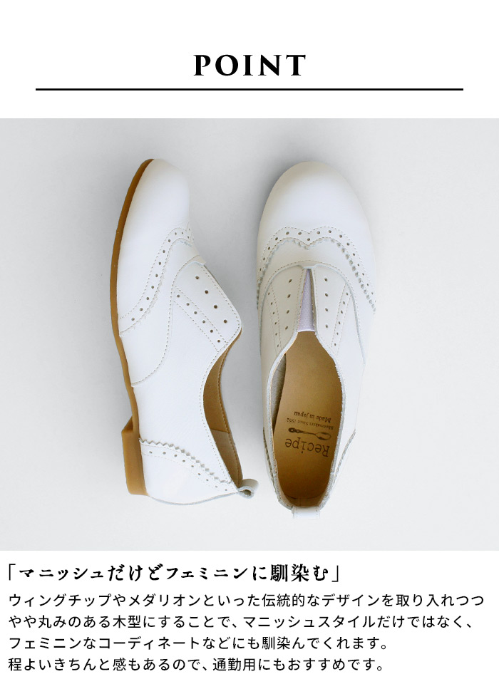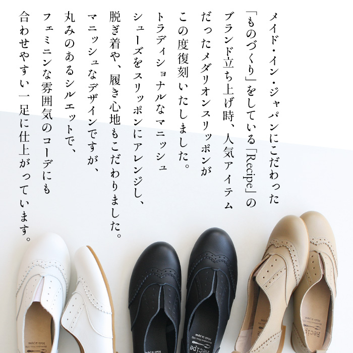 レシピ 靴 recipe フラットシューズ レディース 本革 メダリオン スリッポン RP-214W 2E相当 歩きやすい 痛くない