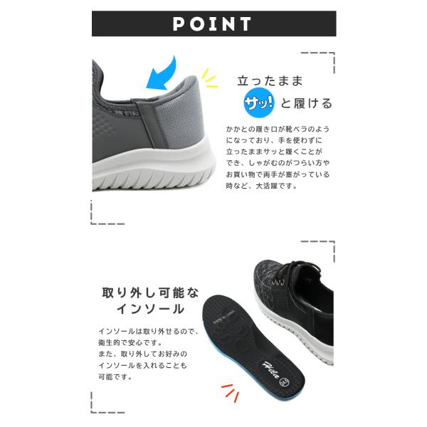 メンズ 手を使わずに履ける ハンズフリー スニーカー シューズ 靴 軽量 スリッポン 手を使わない サッと履ける スポッと履ける 紐なし HM1514
