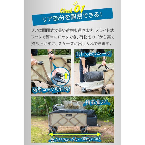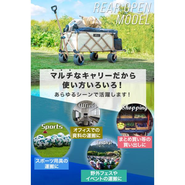アウトドアワゴン キャリーワゴン 大容量 132L 後ろ開け 最大120cm 耐荷重150kg FIELDOOR ワイルドマルチキャリー スマートタフ 1年保証 送料無料