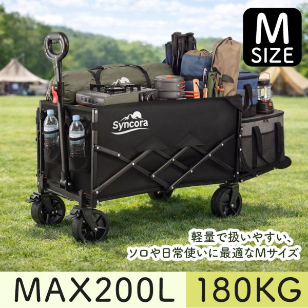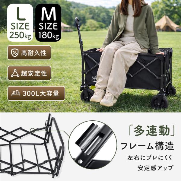 【特典あり!】 アウトドアワゴン キャリーワゴン 大容量 安い キャリーカート 後ろ開け 折りたたみ 4輪 ワイドタイヤ ストッパー 軽量 M/L 頑丈 耐荷重250kg