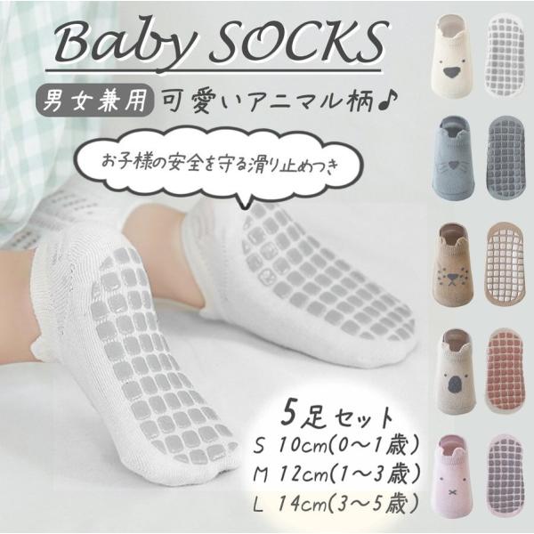 ベビーソックス 5足セット 赤ちゃん 靴下 滑り止め まとめ買い 可愛い 室内