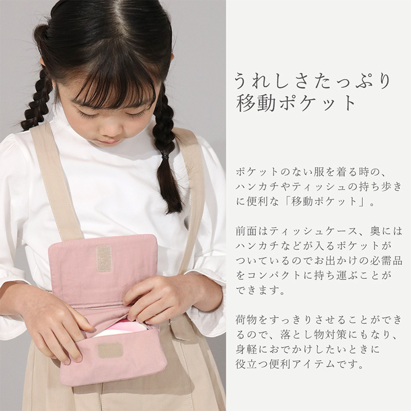 移動ポケット ショルダー 紐付き クリップ付き イブル 女の子 ショルダーバッグ ポーチ マルチポケット ティッシュケース ポシェット 小物入れ