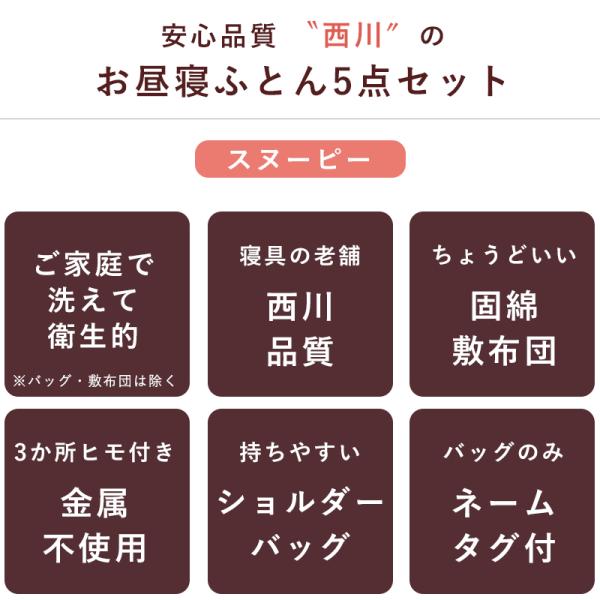 西川 スヌーピー お昼寝布団セット バッグ付き 5点セット 保育園 幼稚園 洗える お昼寝ふとんセット set
