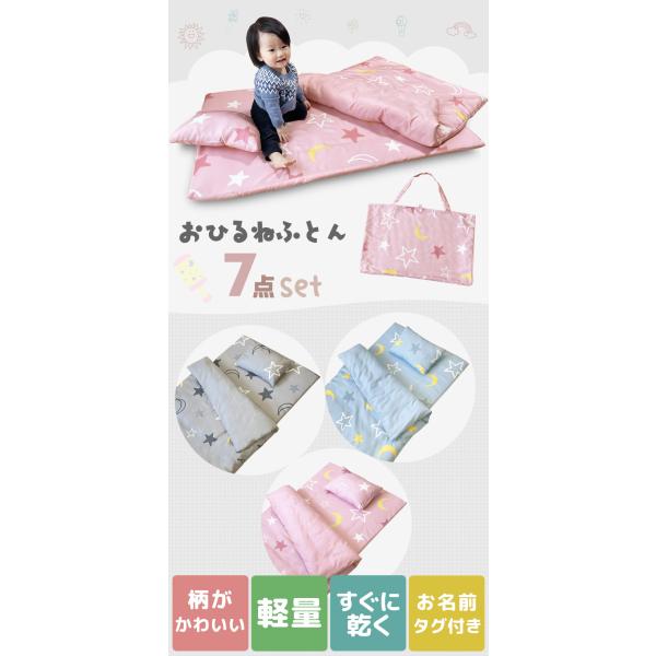 お昼寝布団 セット 保育園用 洗える 保育園 7点 バッグ付 掛け布団 敷き布団 入園 赤ちゃん 子供 ネームタグ お昼寝ふとんセット 幼稚園