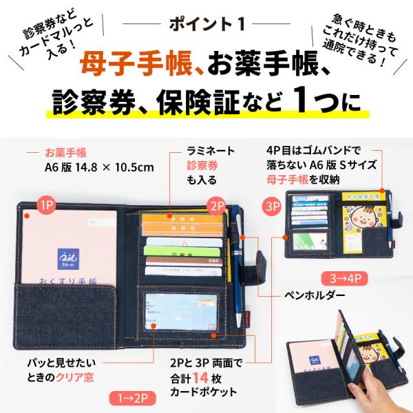 母子手帳ケース 日本が誇るデニム お薬手帳ケース マルチケース 通帳ケース マルチケース パスポートケース トラベルポーチ 診察券ケース 通院ケース