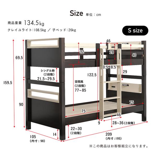 耐荷重700kg 耐震設計 コンセント付 宮付き 三段ベッド 3段ベッド おしゃれ 子供用二段ベッド 親子ベッド Creil Light(クレイユ ライト) 3色対応