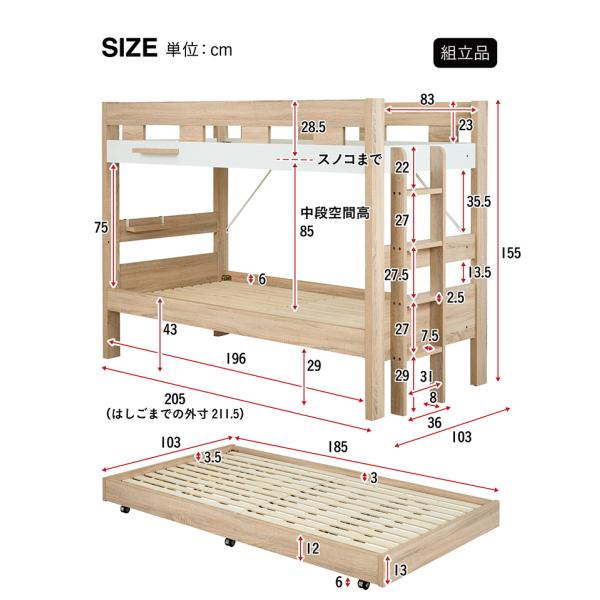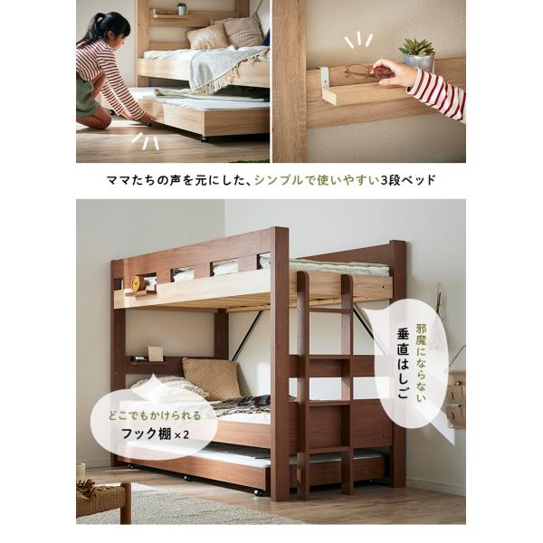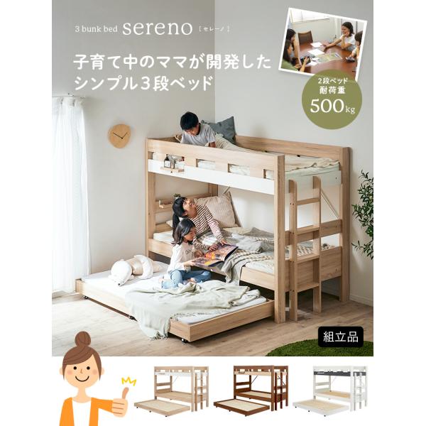 二段ベッド 大人用 子供 三段ベッド 子供用ベッド ベッド シングルベッド 木製 耐荷重500kg おしゃれ 子供部屋 シンプル 3段ベッド Sereno(セレーノ) 3色対応