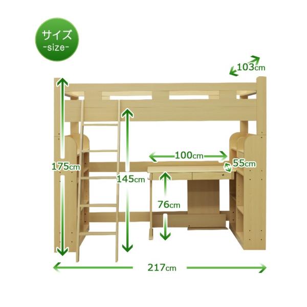 ロフトベッド 机付き ハイタイプ システムベッド 子供 分離 分割 デスク システムデスク 学習机 ベッド シングルベッド オープンラック セパレート