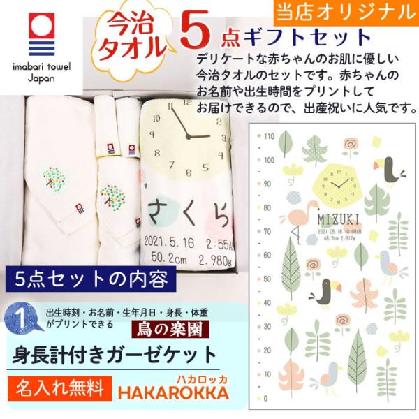 今治タオル 5点セット 鳥の楽園 身長計付きガーゼケット ハカロッカ 日本製 名入れ ガーゼケット ガーゼタオル バスタオル ギフト