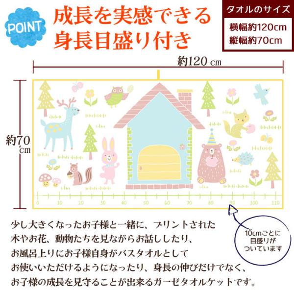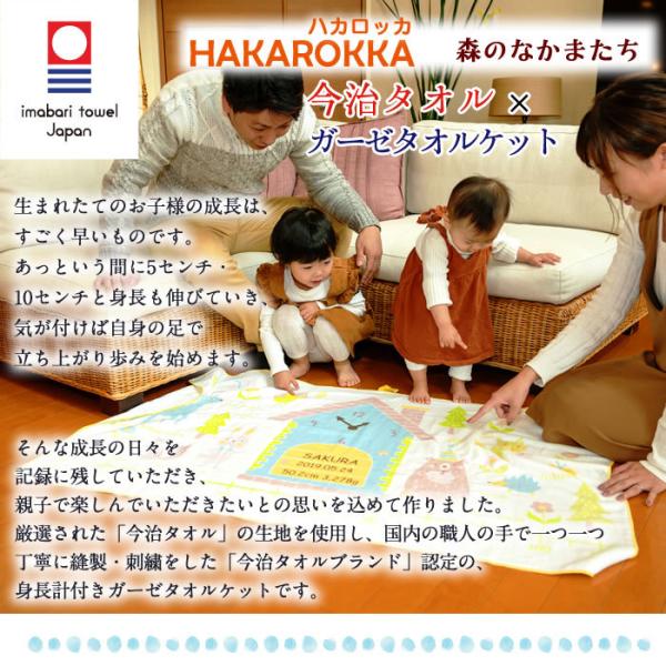 ハカロッカ 森の仲間たち 出産祝い 日本製 ガーゼタオルケット 今治タオル認定 名入れ無料 ガーゼケット ガーゼタオル バスタオル 身長計付きバスタオル
