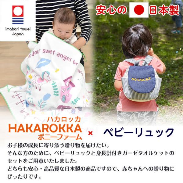 身長計ガーゼケット ベビーリュック セット ハカロッカ 一升餅 出産祝い 日本製 今治タオル バスタオル ギフト 女の子 男の子 ポニーファーム