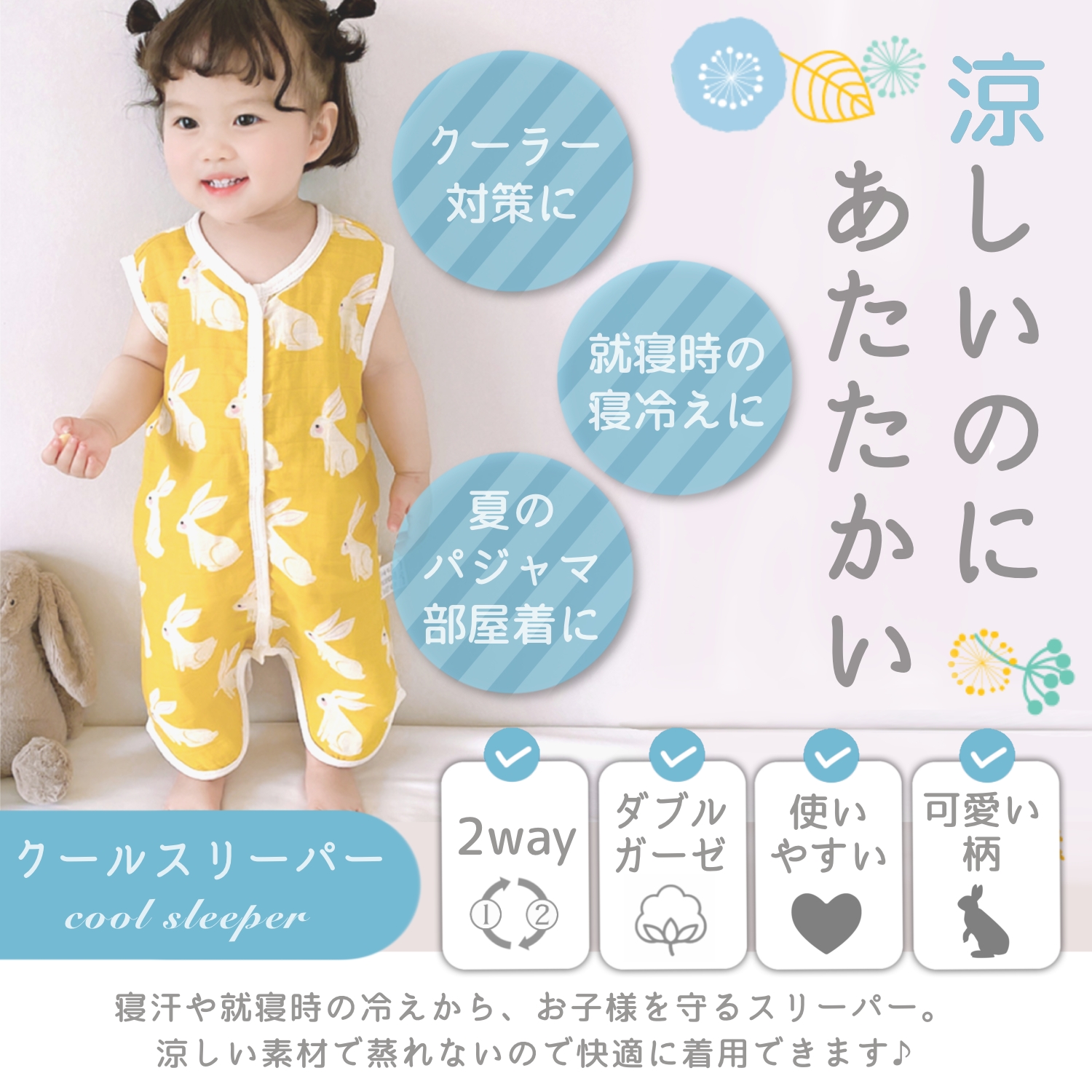 スリーパー 夏 赤ちゃん キッズ 2重 ガーゼ 夏用 ガーゼスリーパー ベビースリーパー 夏用スリーパー 新生児 春 子供 2重ガーゼ 薄手 2歳 3歳 幼児 暑さ対策