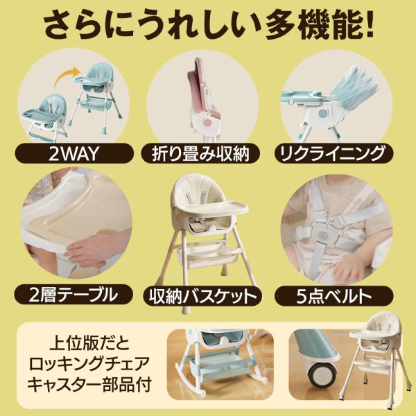 ベビーチェア 折りたたみ ハイローチェア ハイタイプ 持ち運び 多機能 ダイニング ベビー テーブル付き 安全ベルト ロッキングチェア