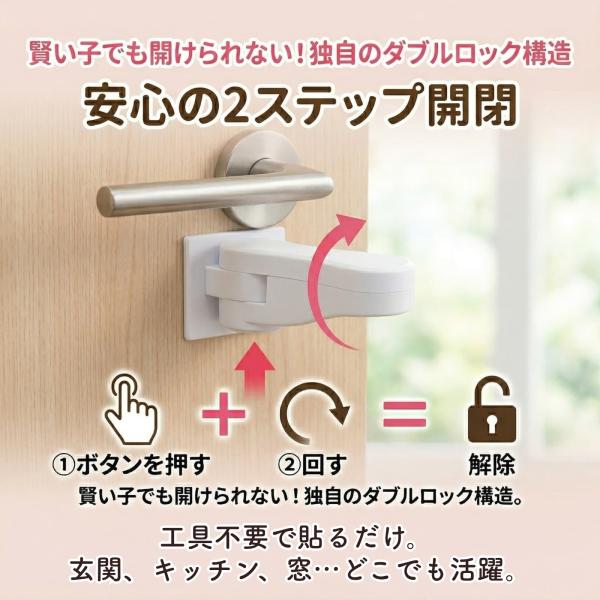 チャイルドロック ドアノブ ストッパー 2個セット ワンタッチ 後付け 安全ロック ベビーガード 赤ちゃん 子供 ペット 脱走防止 室内