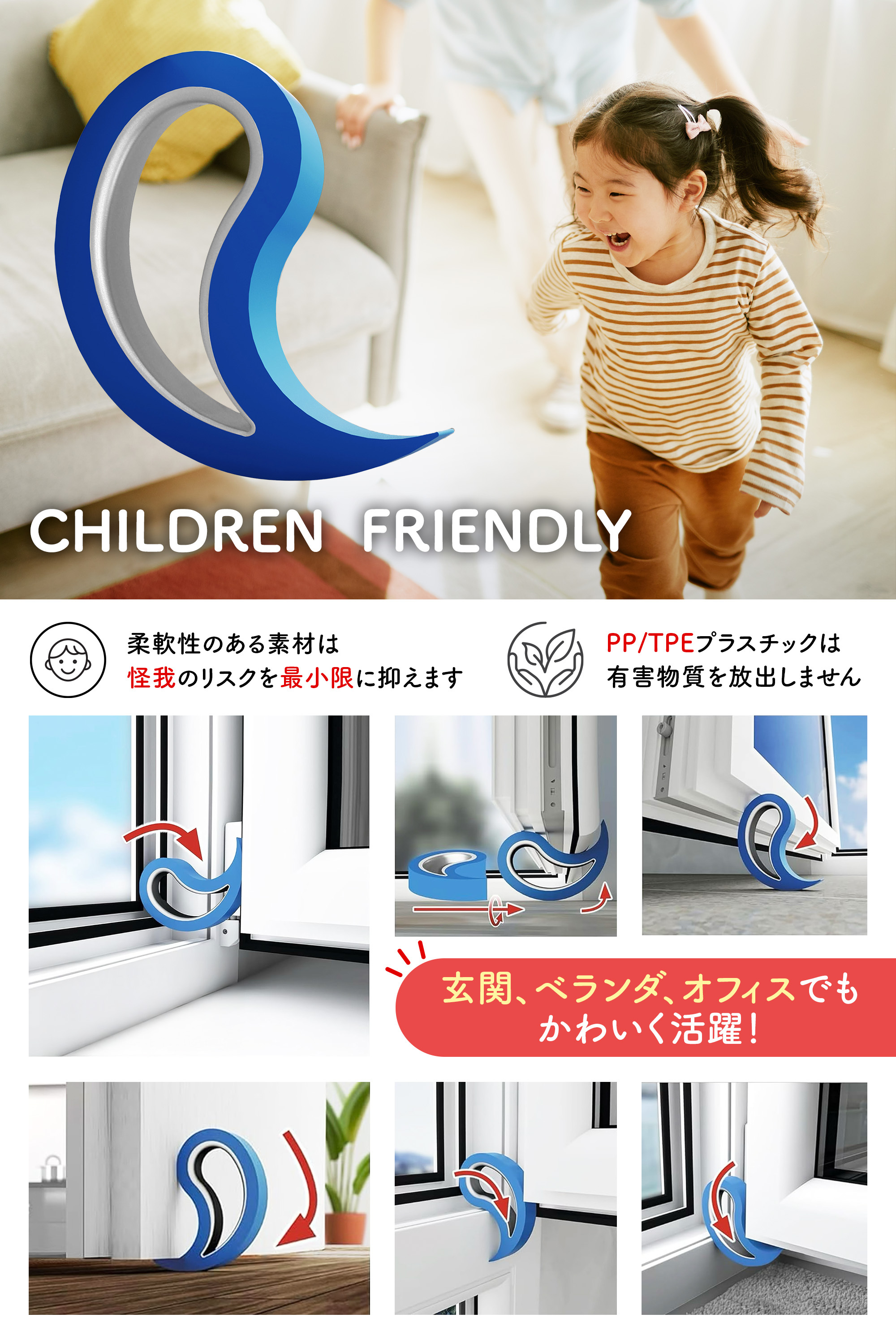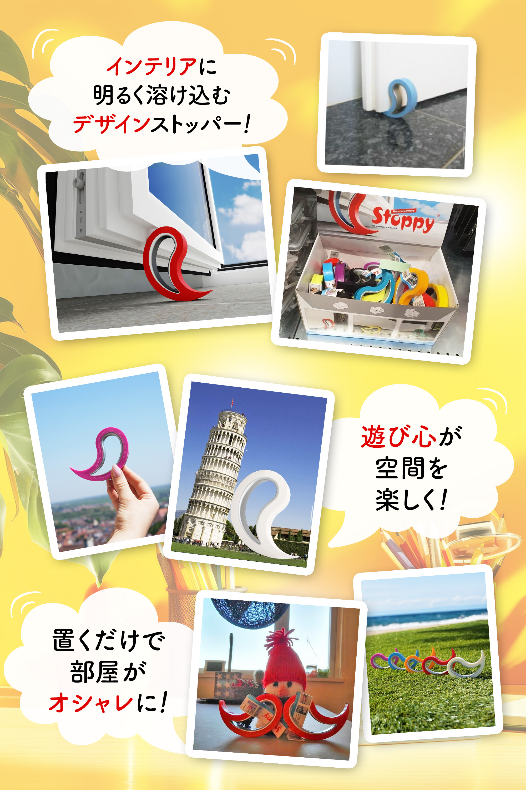 Stoppy ストッピー 室内 ドアストッパー チャイルドロック 窓ストッパー ドアロック 2個セット 玄関 かわいい 猫 子ども 置くだけ ゴム 強力