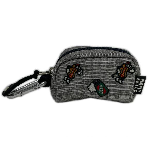 coco 中古 パーリーゲイツ PEARLY GATES ボールポーチ グレー ボールケース 刺繍 ホットドッグ BEER ネコポス発送可 K027575