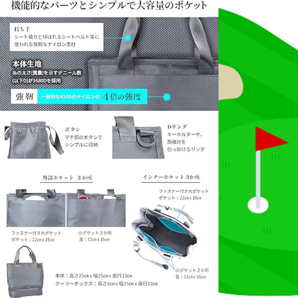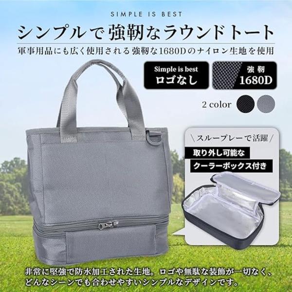 GINO ゴルフ ラウンドトートバッグ 取り外し保冷庫 2段 Black/黒 Grey/グレー ラウンドポーチ カートバッグ ゴルフバッグ レディース メンズ