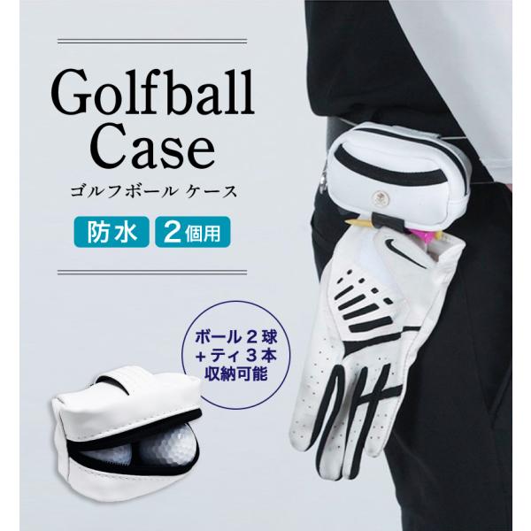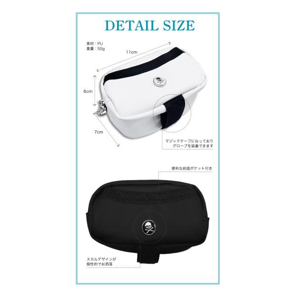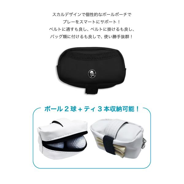 ワンポイント スカル ゴルフ ボールケース 2個用 ボールホルダー ティーホルダー ボールポーチ フック付き 防水