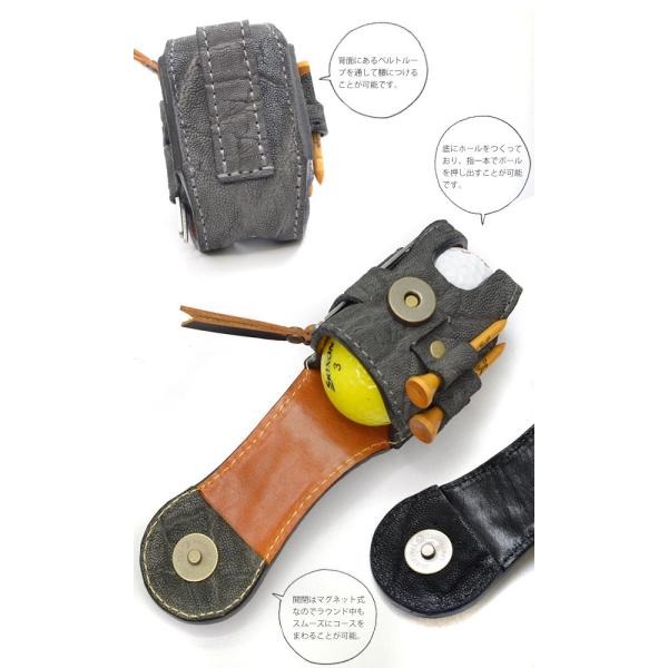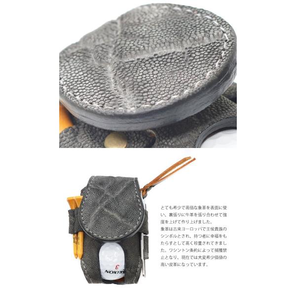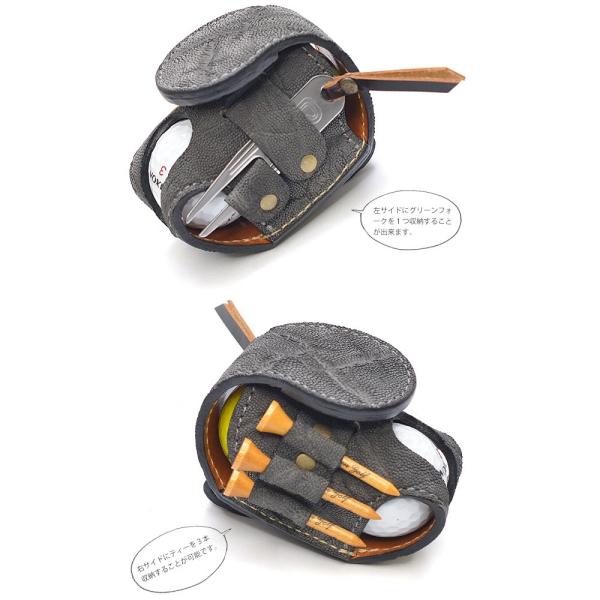 ゴルフボールホルダー ゴルフ ケース ボールケース メンズ レディース ホルダー 本革 ポーチ 収納ケース ティー ボール グリーンフォーク 象革 日本製