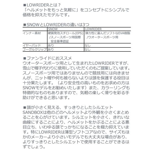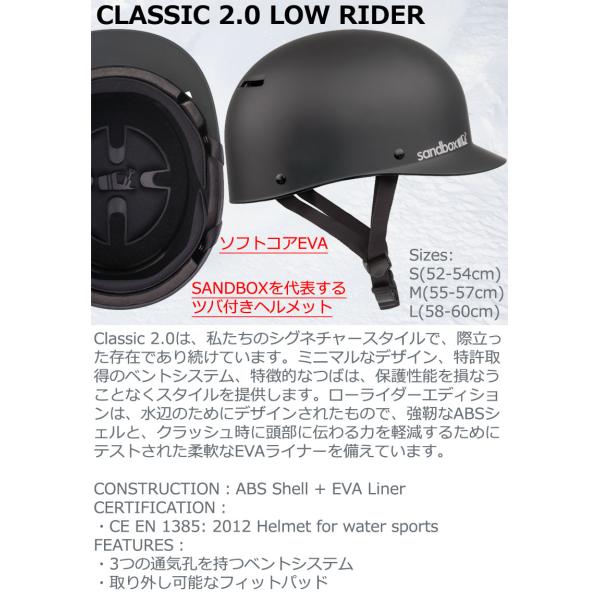 即出荷 SANDBOX/サンドボックス CLASSIC 2.0 LOW RIDER クラシックローライダー ヘルメット スノーボード スキー スケート ウェイク メンズ レディース キッズ