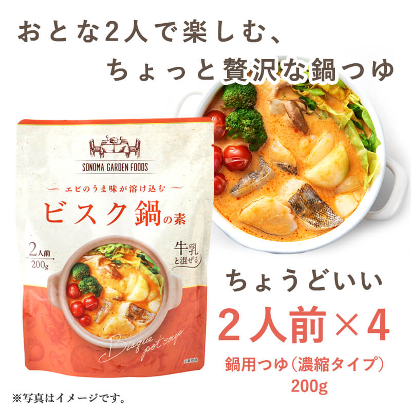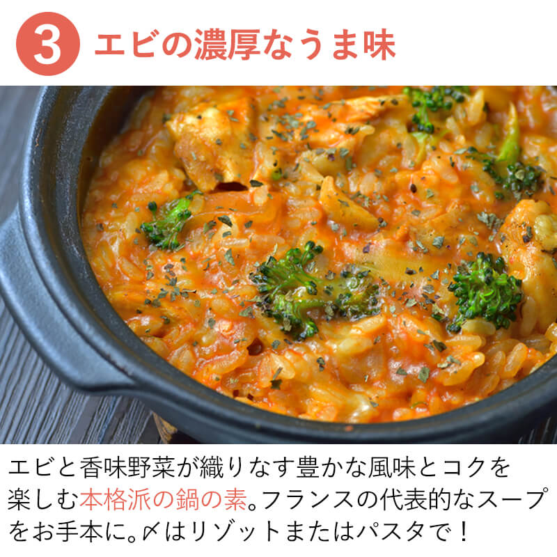 (プレミアム鍋つゆの素)ビスク鍋の素(2人前(200g)×4袋)海老とトマトのスープ鍋 パスタ リゾット アレンジ色々 鍋のもと(送料無料)(常温便)