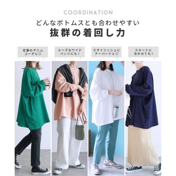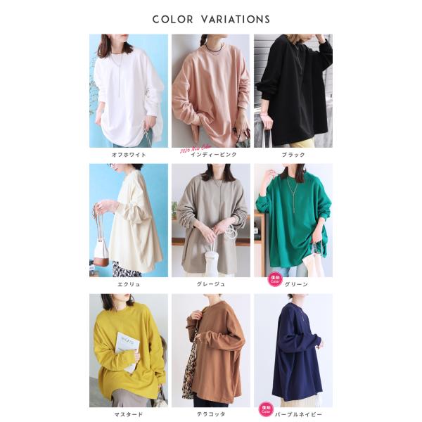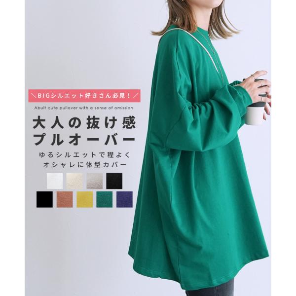 ボリューム袖・ゆったりプルオーバー 100589 レディース トレーナー スウェット 長袖 ゆったり トップス チュニック ワンピース 薄手 秋 春 ネコポス発送10