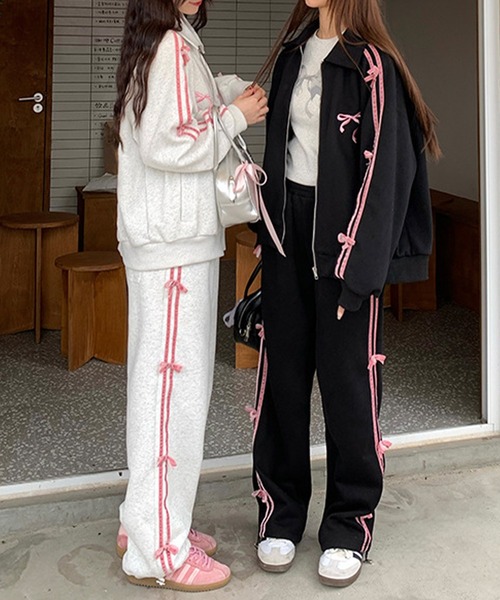 ジャージ 「セットアイテム」ベロアミニリボン ドロスト付き サイドダブルラインジャージスウェット レディース