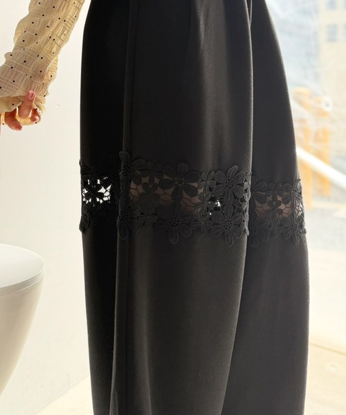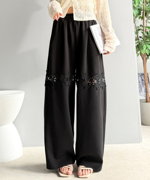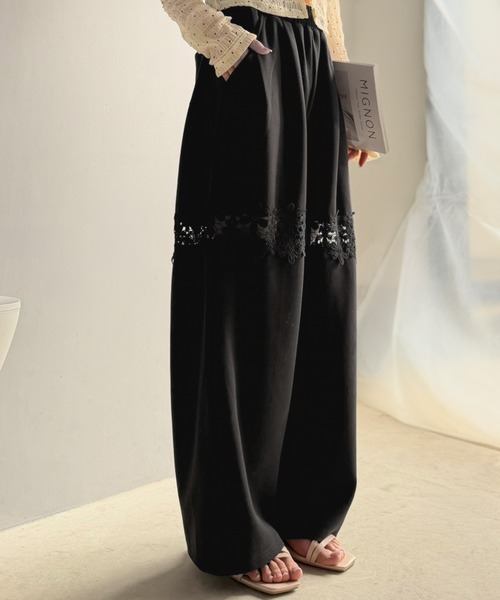 スウェットパンツ ジャージ 「mily bilet」唯一無二の華やかデザイン。花柄レース 切り替えスウェットパンツ レディース