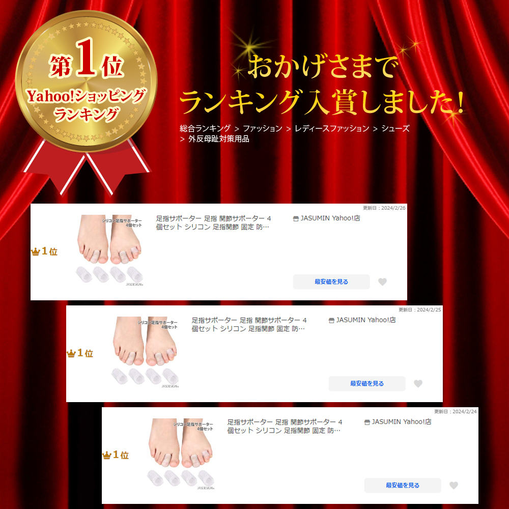 足指サポーター 足指 関節サポーター 4個セット シリコン 足指関節 固定 防水 サポーター 男性 女性 子供 左右兼用 JM-278B