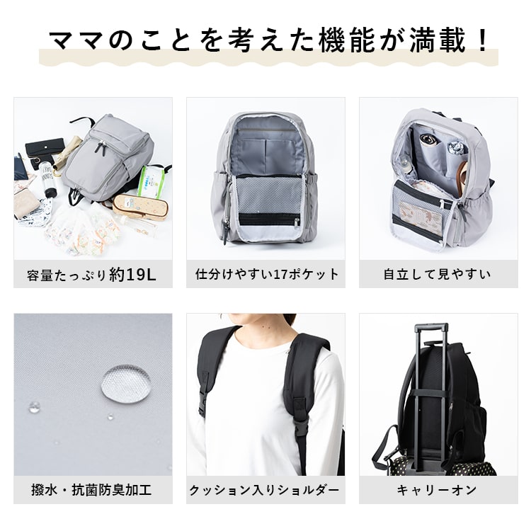 マザーズバッグ リュック マザーズリュック 大容量 自立 撥水 哺乳瓶 ブランド 抗菌 防臭 17ポケット 軽量 ママカル ギフト