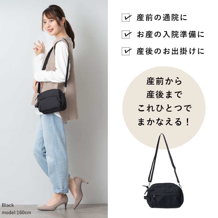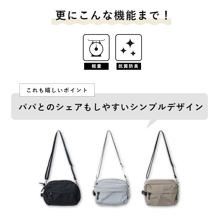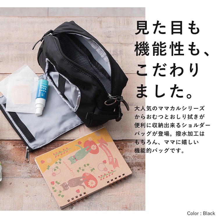 おむつポーチ おしりふき内蔵 ショルダーバッグ レディース コンパクト 撥水 軽量 ママカル 抗菌防臭