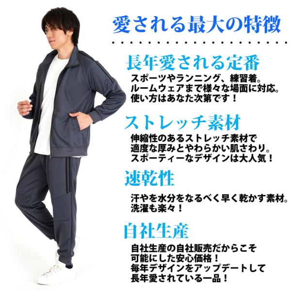 ジャージ メンズ 上下 ストレッチ セットアップ やわらか素材 ユニフォーム チーム 作業着 トレーニングウェア スポーツウェア ライン入りジャージ上下セット