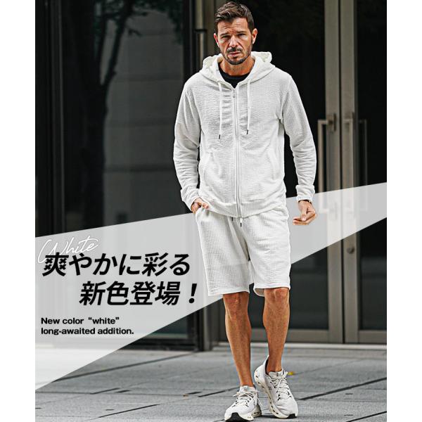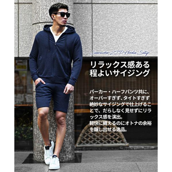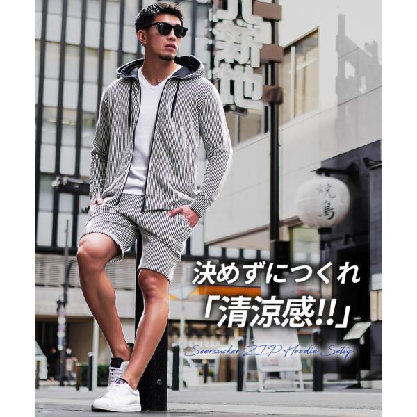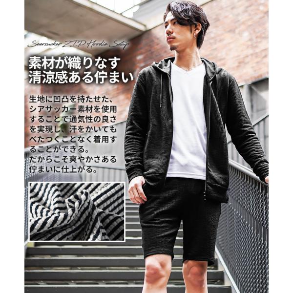 クーポン利用で10%OFF セットアップ メンズ ブランド パーカー 薄手 ハーフパンツ メンズ 短パン ジップパーカー 半ズボン ショートパンツ 上下 シアサッカー