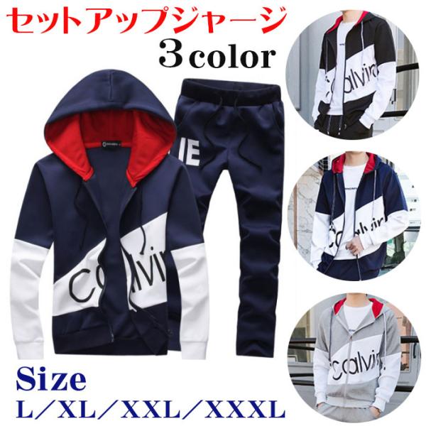 ジャージ メンズ セットアップ スウェット 韓国風 上下セット スリム パーカー 長袖 スポーツウェア 英字柄 メンズジャージ 大きいサイズ