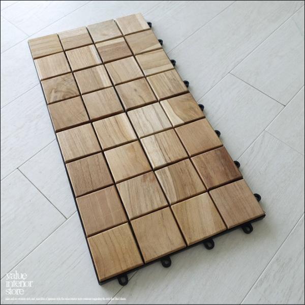 チーク無垢材 デッキマットSQ バルコニーマット デッキタイル フロアタイル 無垢材マット 連結式 床タイル テラスタイル 30cm