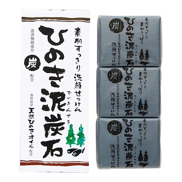 ひのき泥炭石 洗顔せっけん すっきりタイプ 75g×3個セット ベントナイト・カオリン・粉末炭・パパイン・ひのきピュアオイル配合 ペリカン石鹸 正規販売店
