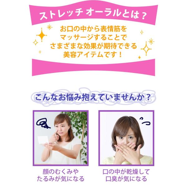表情筋マッサージ 美容グッズ Stretch Oral (ストレッチオーラル) ピンク/ブルー 1個 (メール便2点まで) ほうれい線 リフトアップ 美顔器 口輪筋 トレーニング