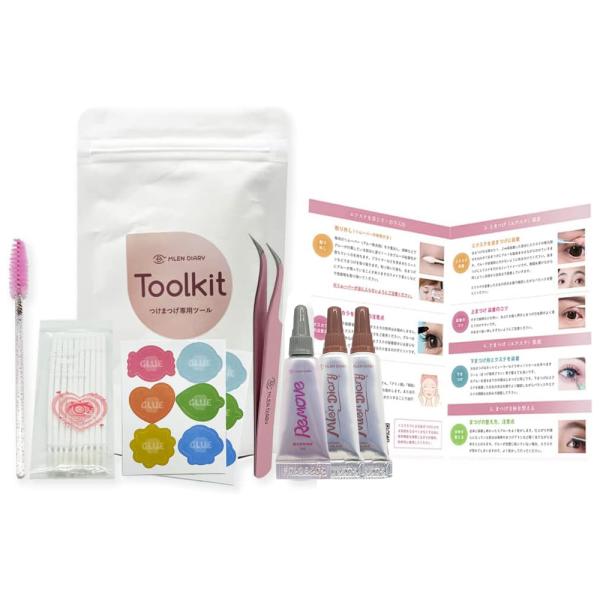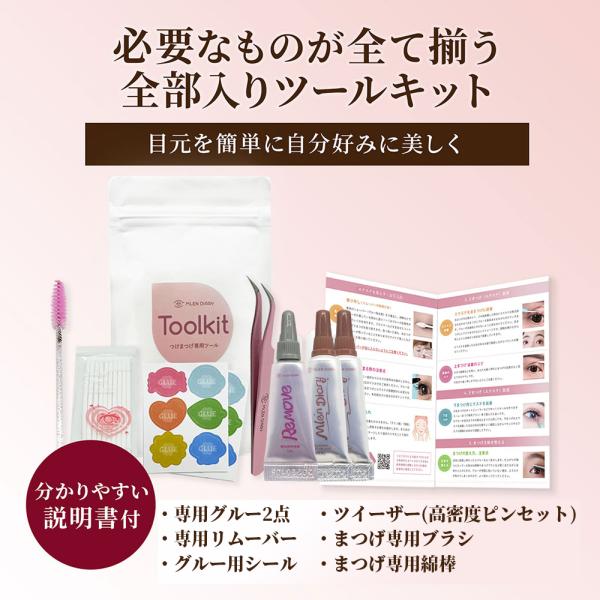 MLENセルフで簡単まつエクキット ツールキット 正規品 速乾グルー リムーバー ツイーザー ブラシ スワッブ 説明書 セルフつけまつげ用