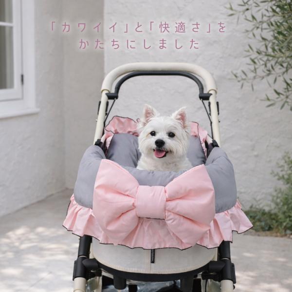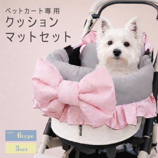 ペットカートクッション リバーシブル カート マット バギー リボン フリル お散歩 通院 移動 電車 旅行 犬 猫 カフェマット クレート ベッド ペットキャリー