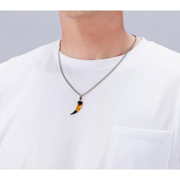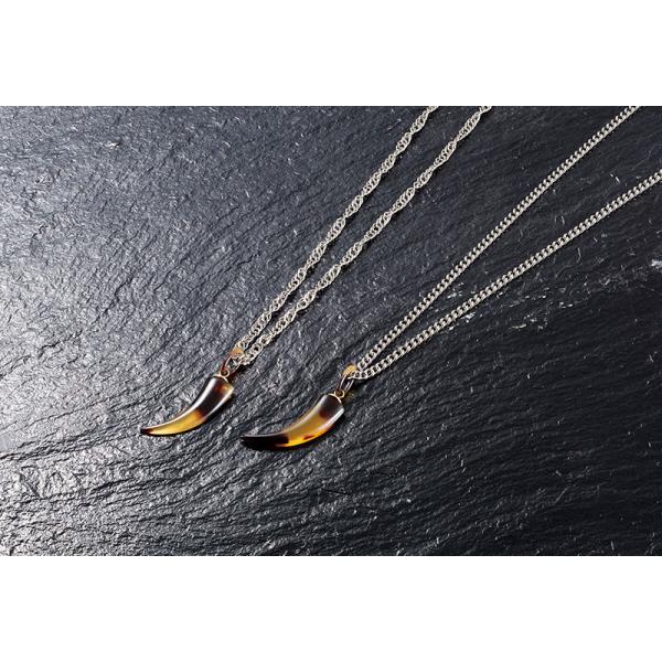 本べっ甲「牙」純チタン磁気ネックレス 男らしい牙 希少な天然べっ甲 血行とコリを改善 上質な存在感 独特の艶 喜平 スクリュー