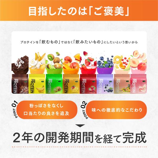 VITAS バイタス ホエイプロテイン 個包装 お試し 8種 32g×8包 キウイ マンゴー チョコ フルーツミックス ブルーベリーヨーグルト ピーチヨーグルト バナナ