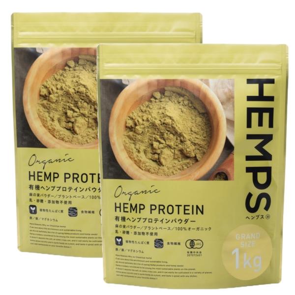 HEMPS 有機ヘンププロテイン 1kg 2袋セット ヘンプフーズジャパン 有機ヘンププロテインパウダー