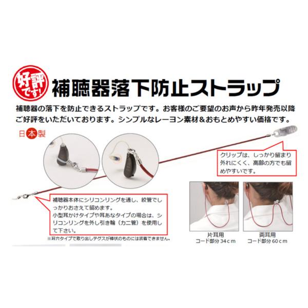 補聴器 落下防止 紛失防止 ストラップ 片耳用 黒 ブラック 日本製 9215-01
