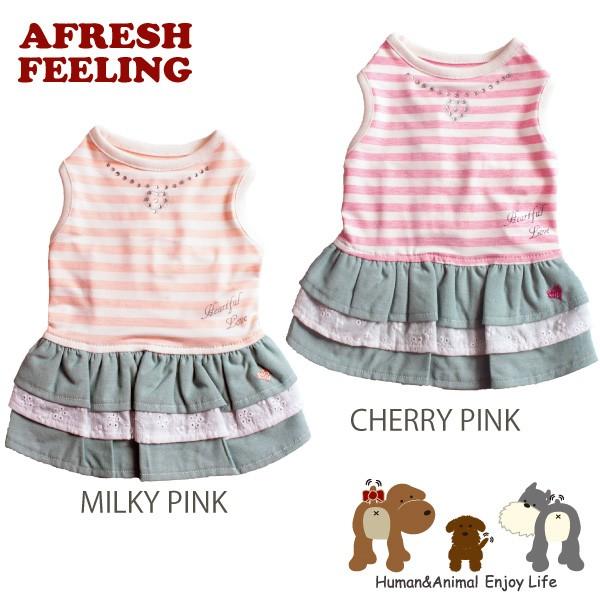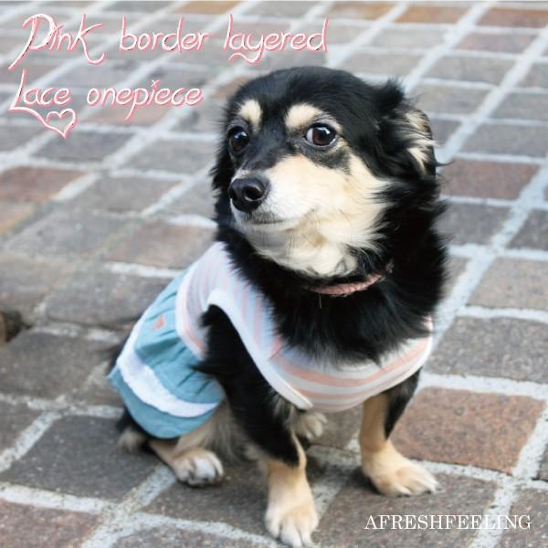 ピンクボーダーレイヤード風レースワンピ サイズ ペットウェア ドッグウェア ペット服 犬服 犬用 アフレッシュフィーリング メール便1点のみOK