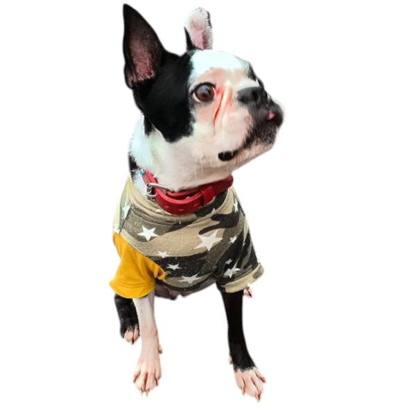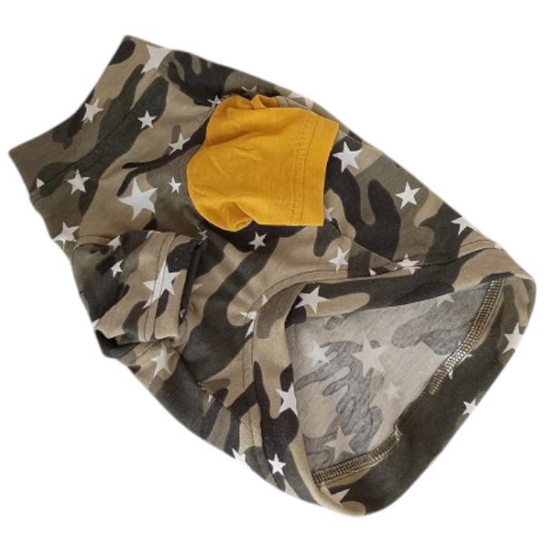 犬服オリジナル・普段着に・カモフラ(迷彩)柄・袖・ミニポケット付きわんこ服2501f #犬服 #ボストンテリア #フレンチブルドッグ #パグ #トイプードル