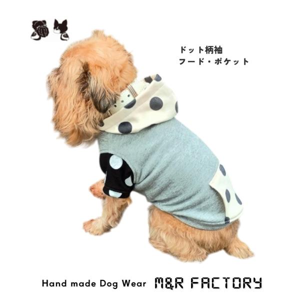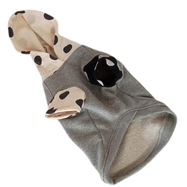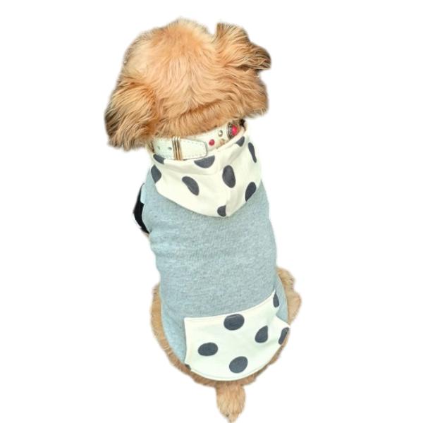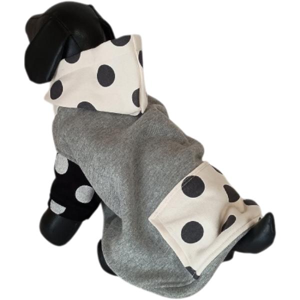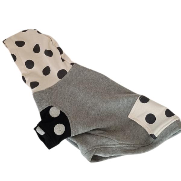 オンラインストア限定・犬服オリジナル 裏毛グレー地シロ地ドット柄フード・袖・ポケット付トレーナー2605 #犬服 #ボストンテリア #フレンチブルドッグ