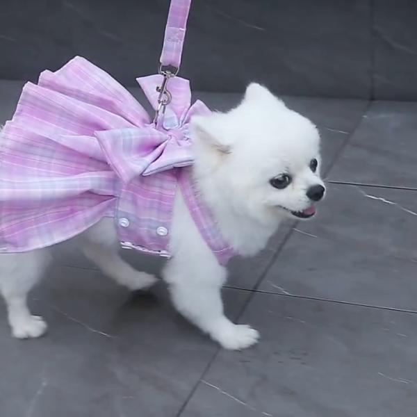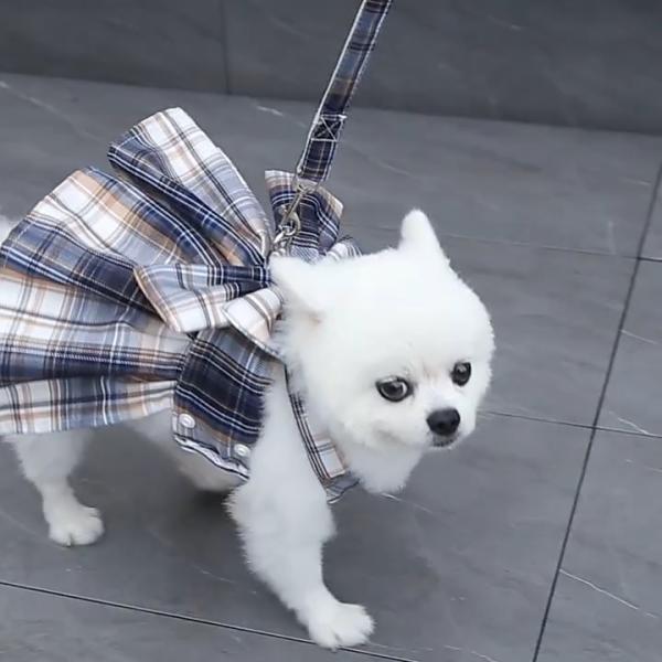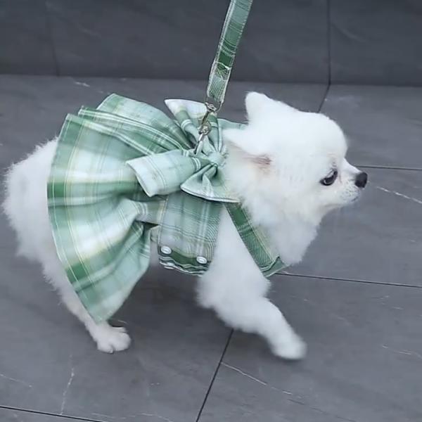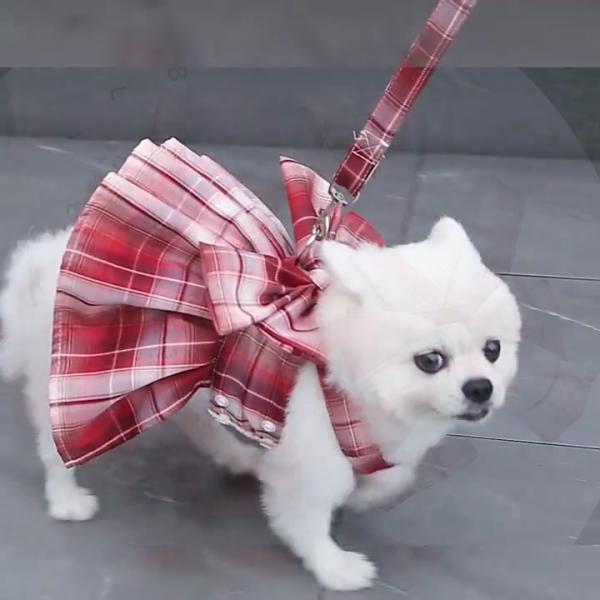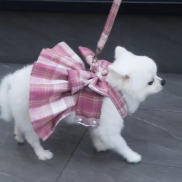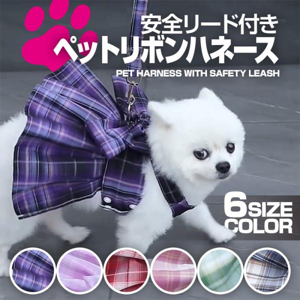 ペット服 リボンハーネス チェック柄 同色安全リード付き 小型犬 中型犬 6カラー 6サイズ~20kg